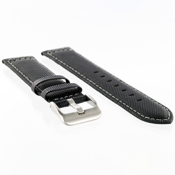 Genuine sailcloth material in black, all the straps from our Sailcloth range come in a choice of stiching: Black, White, Blue, Red, Grey, Orange & Green.